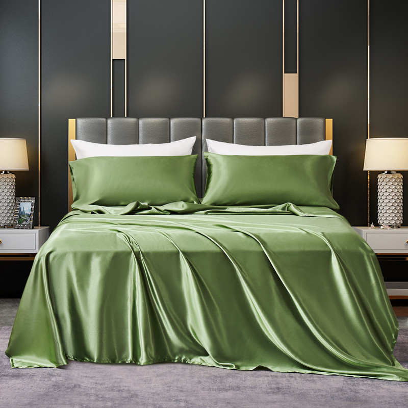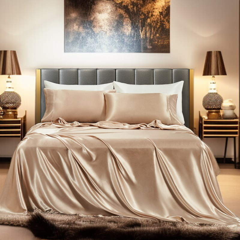 Amerikanischer Stil 4-teiliges Seiden-Satin-Bettwäsche-Set mit tiefen Taschen