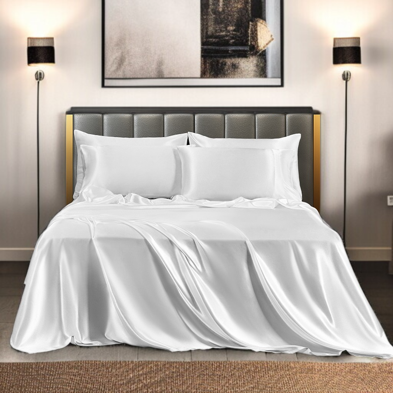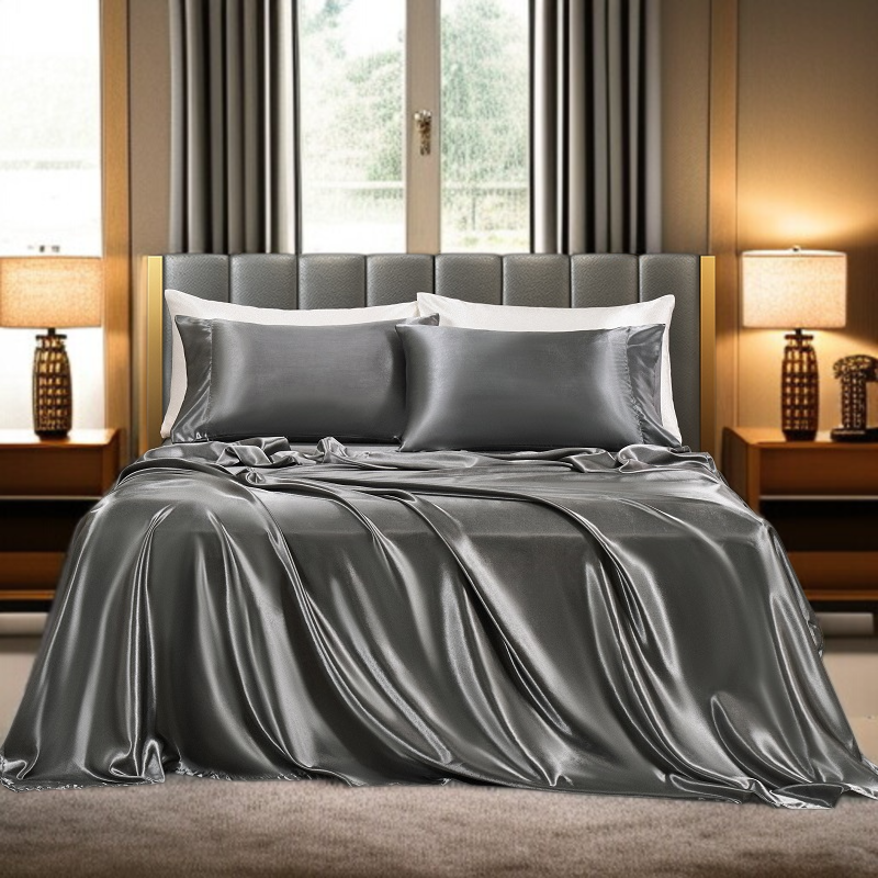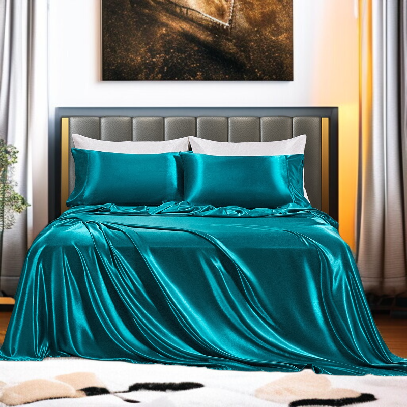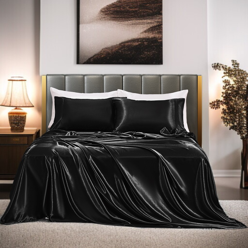 ● Luxuriöses 4-teiliges Bettwäsche-Set aus hochwertigem Seiden-Satin im amerikanischen Stil sorgt für ein außergewöhnlich weiches und glänzendes Schlaferlebnis.