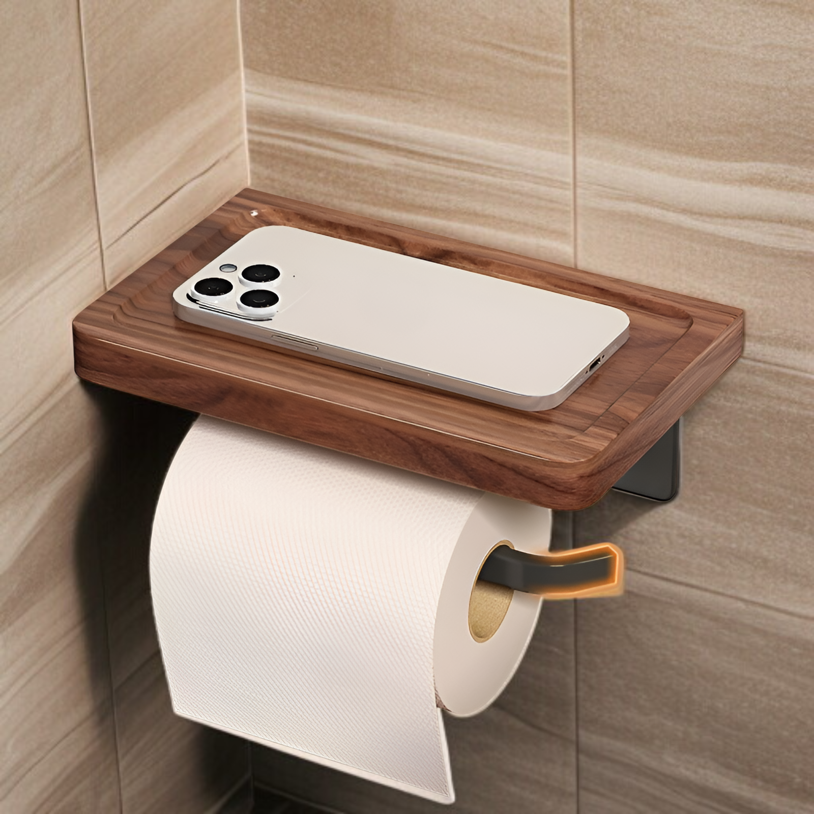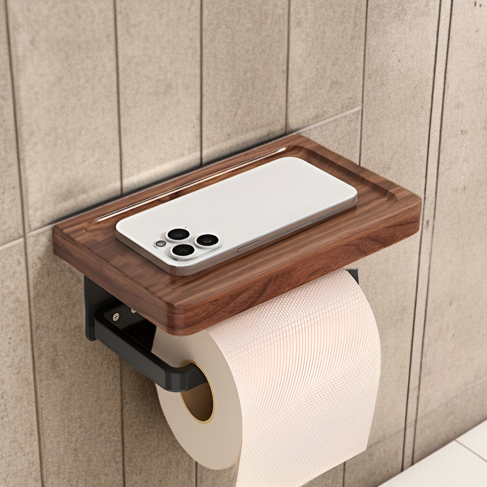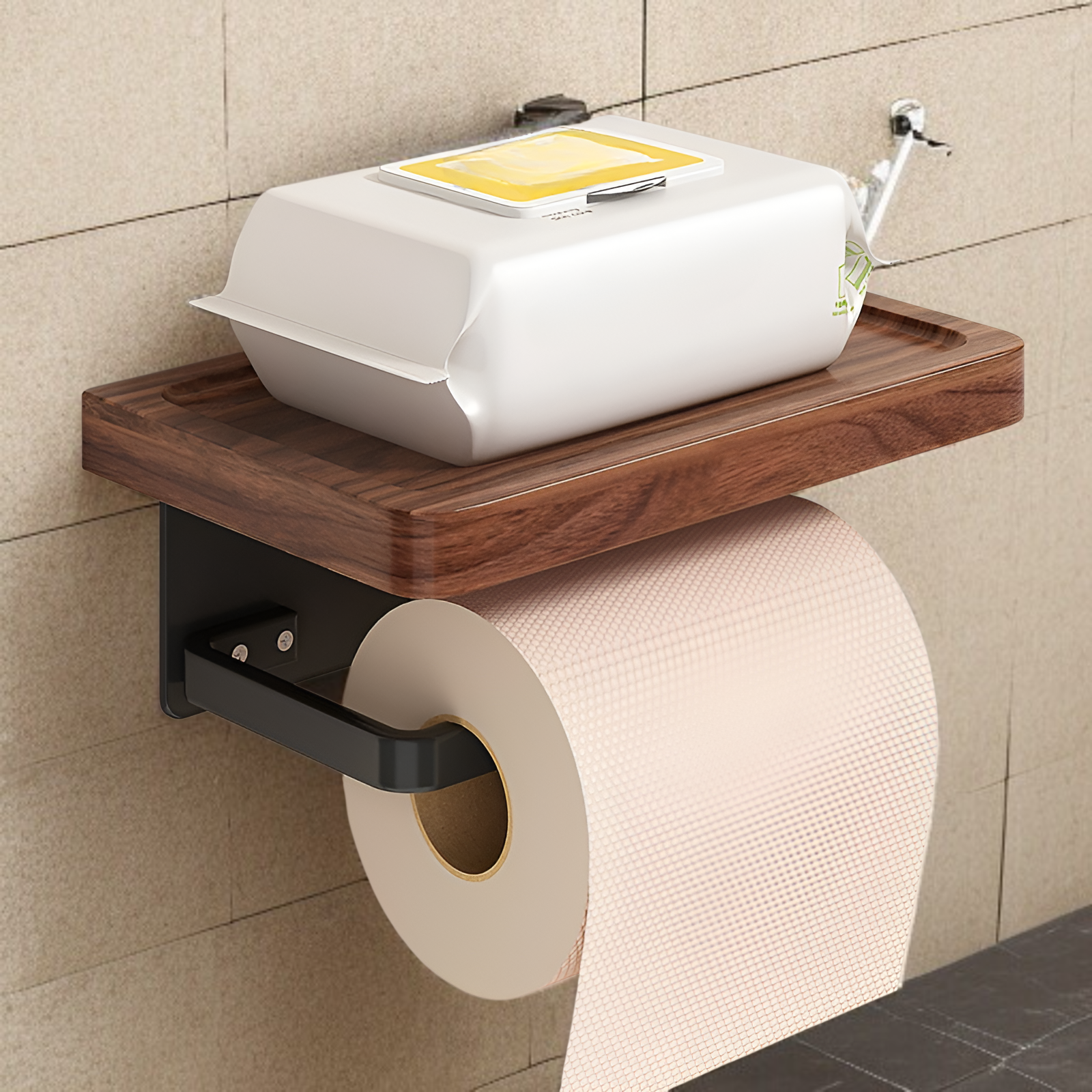 Papiertuchhalter aus Walnussholz, bohrfrei, Toilettenpapierbox und Aufbewahrung