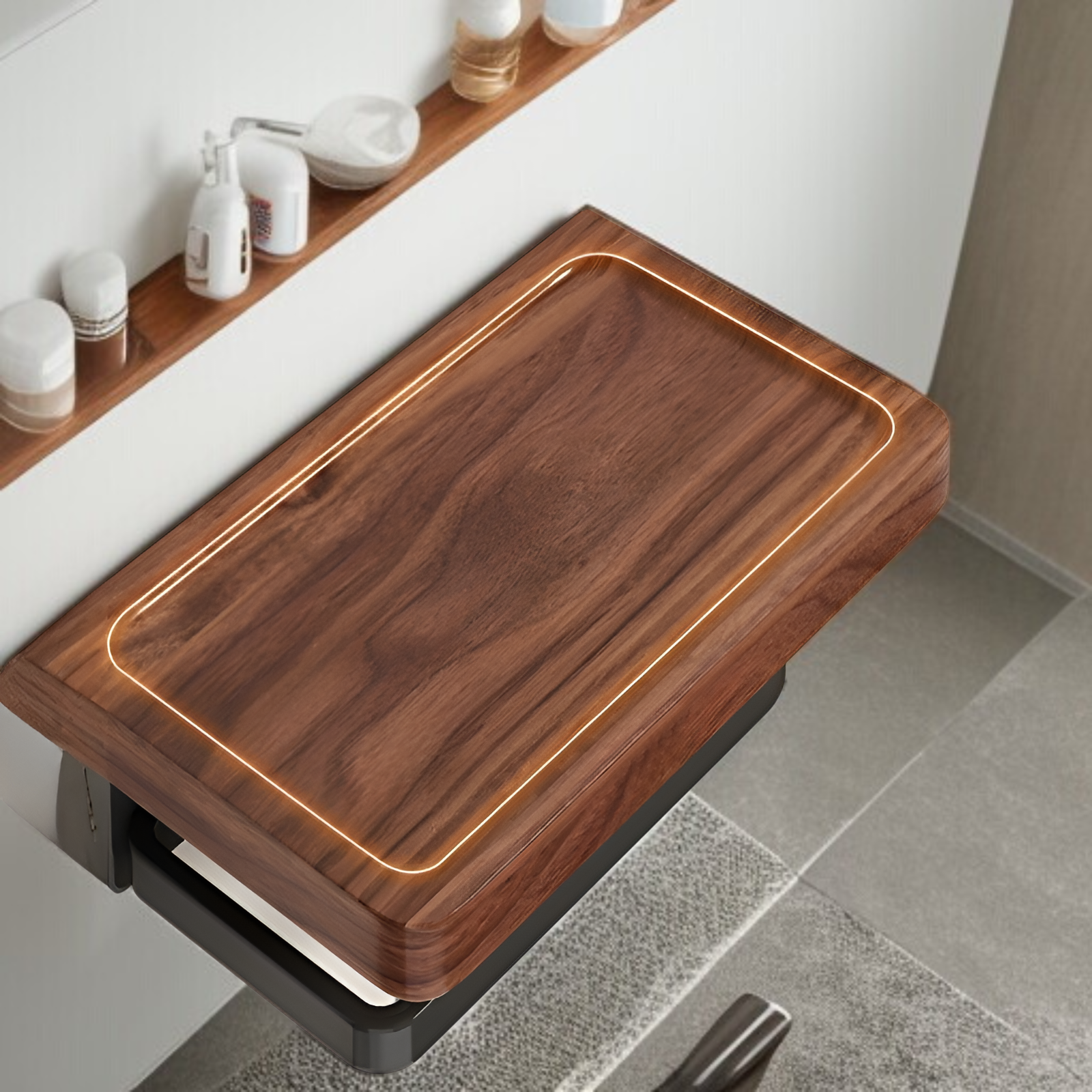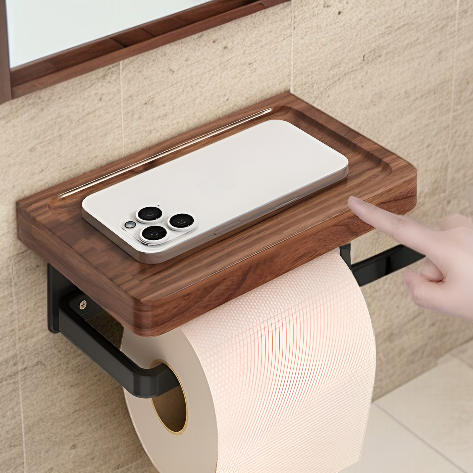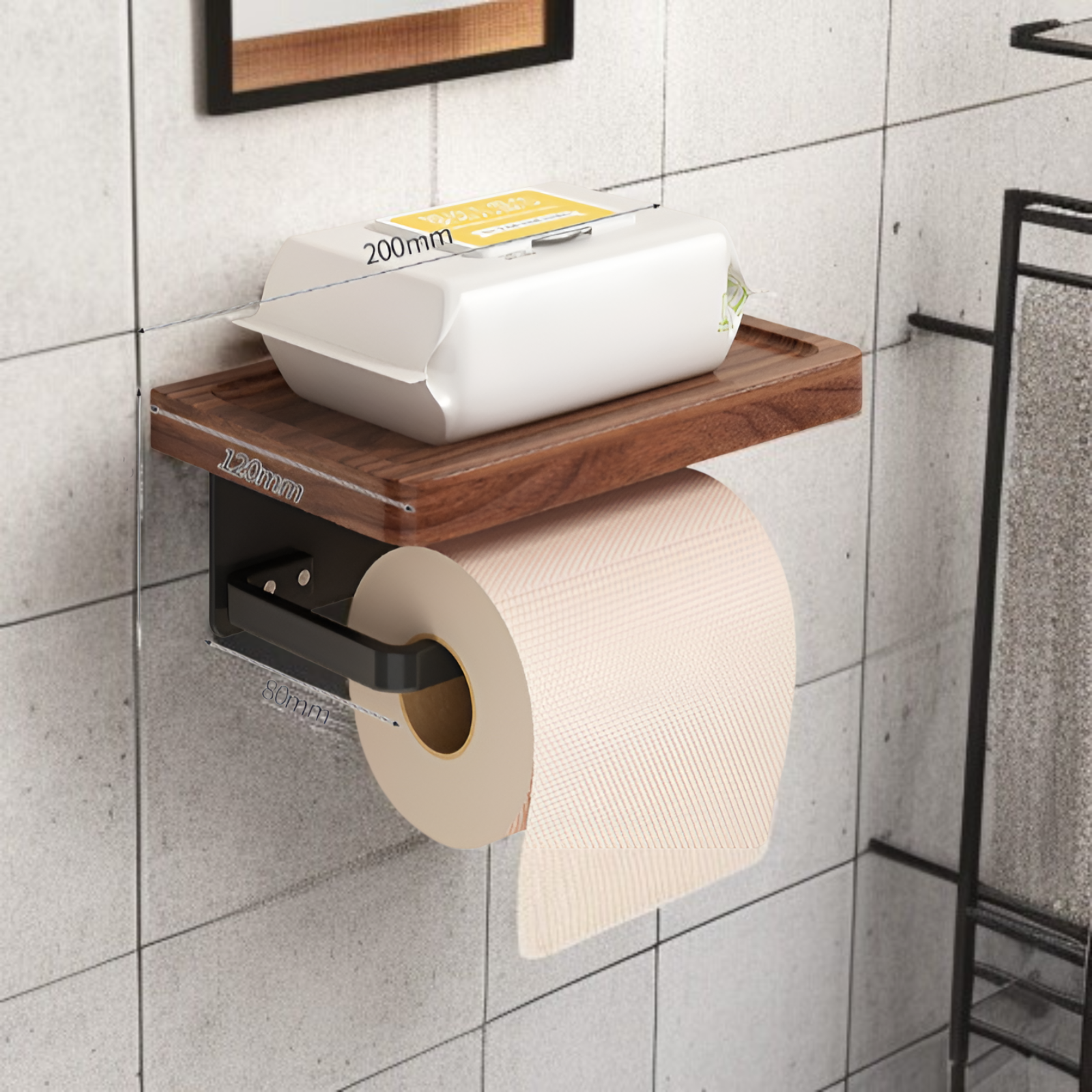 Papiertuchhalter aus Walnussholz, bohrfrei, Toilettenpapierbox und Aufbewahrung